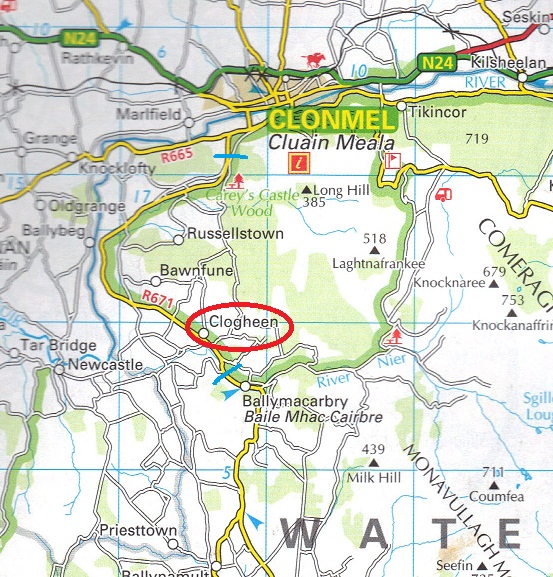 Sure enough, when I spread open my map book, there sat the TRUE CLOGHEEN.