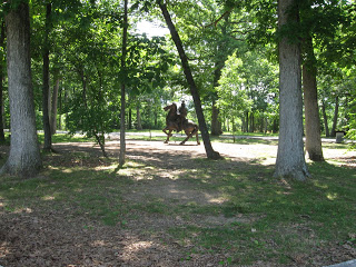 In 1998, the above statue of James Longstreet was one of the last to be erected. Compare it to that of Robert E. Lee. Rather than set upon a massive pedestal as are most generals’ statues, it is tucked into the trees and at ground level.