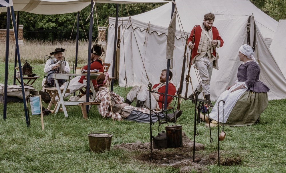 In 1782, fires burned before the small city of tents where the women known as camp followers prepared meals for local militiamen and soldiers alike. Winters were mild in the South, yet a warm, spring breeze was surely welcomed.