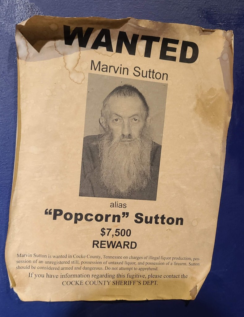Marvin “Popcorn” Sutton stared at me from a Wanted Poster on the wall of Savannah, Georgia’s Prohibition Museum. A moonshiner, it said, designated as “armed and dangerous.” With a name like that, there had to be a story.